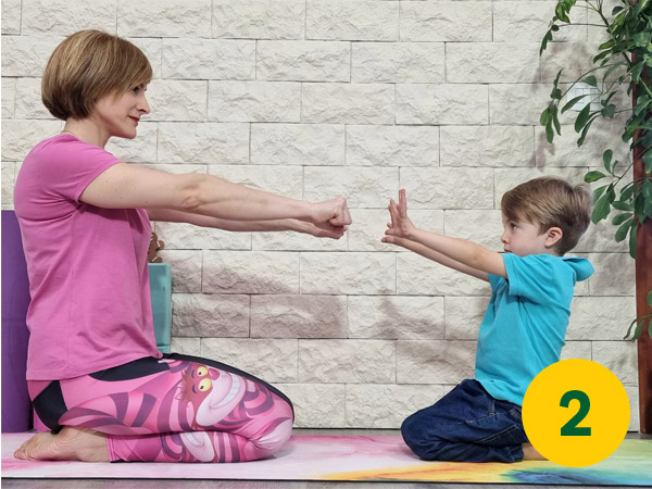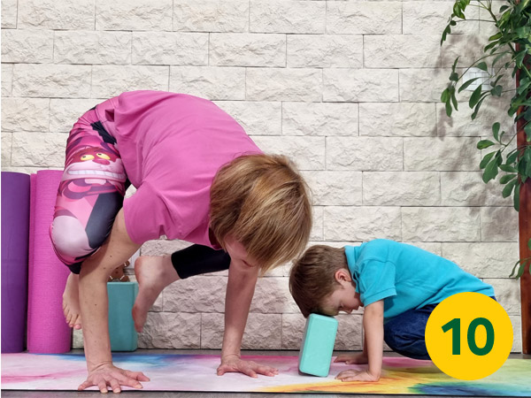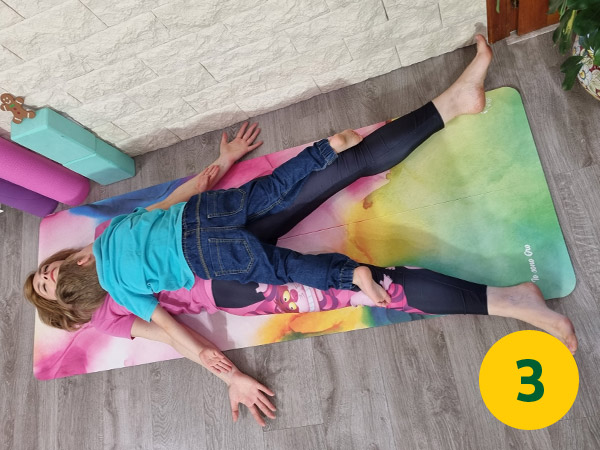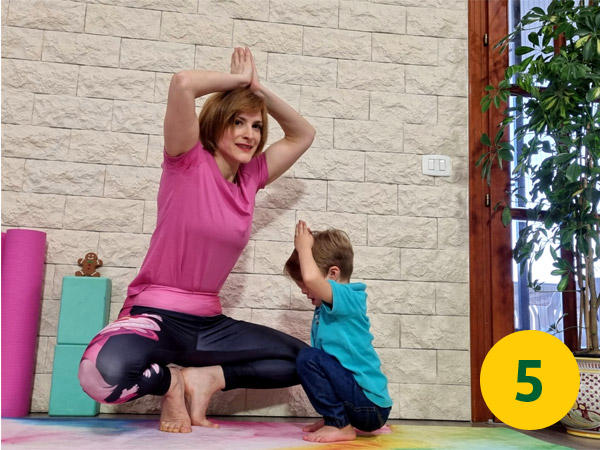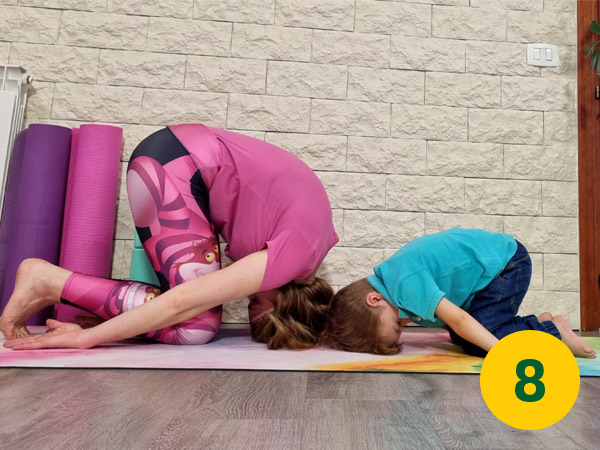 Ricordate, quando si fa yoga con i bambini (specialmente al di sotto dei sei anni) il fine non è raggiungere la posa perfetta ma assaporarsi il processo.