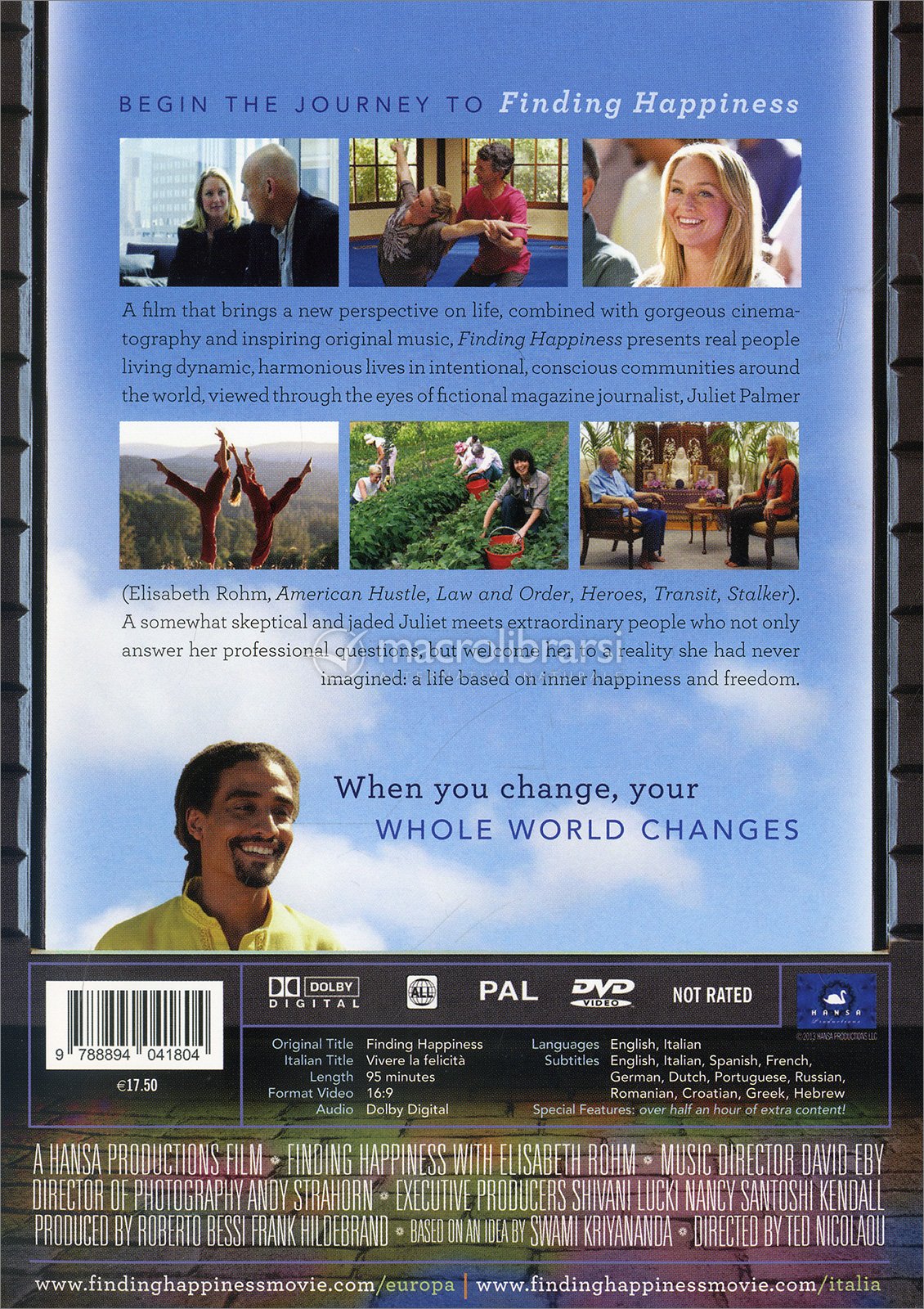 Interamente girato nelle reali comunità Ananda in California, Italia e India, Finding Happiness segue Juliet nei suoi incontri con i veri residenti di Ananda che, interpretando se stessi senza copione, rispondono alle sue domande introducendola a una realtà che mai avrebbe pensato potesse esistere.